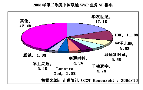 2006年第三季度中國移動(dòng)WAP業(yè)務(wù)SP排名