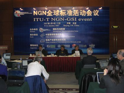 2007年1月8日至12日,中國通信標準化協(xié)會與信息產(chǎn)業(yè)部電信研究院共同在北京承辦了ITU-T NGN GSI(Global Standard Initiative)會議。來自中國、北美、歐洲和東南亞等國家的218位代表參加了此次會議。