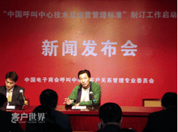2月7日,中國(guó)電子商會(huì)呼叫中心與客戶(hù)關(guān)系管理專(zhuān)業(yè)委員會(huì)(CNCCA)在北京信息產(chǎn)業(yè)部萬(wàn)壽路辦公區(qū)召開(kāi)“中國(guó)呼叫中心技術(shù)及運(yùn)營(yíng)管理規(guī)范”制訂工作啟動(dòng)新聞發(fā)布會(huì)。在京各主要新聞媒體高度關(guān)注在國(guó)家宏觀政策轉(zhuǎn)向服務(wù)外包的大背景下,呼叫中心中國(guó)標(biāo)準(zhǔn)的出臺(tái)將為產(chǎn)業(yè)的發(fā)展和國(guó)際競(jìng)爭(zhēng)格局的變化帶來(lái)如何的影響。呼叫中心行業(yè)各知名廠商、運(yùn)營(yíng)商、服務(wù)提供商代表出席新聞發(fā)布會(huì)。會(huì)議同時(shí)發(fā)布了《2007年中國(guó)呼叫中心運(yùn)營(yíng)標(biāo)桿管理報(bào)告》。
