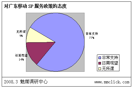 最近公布的空中網(wǎng)財務(wù)報表的數(shù)據(jù)顯示空中網(wǎng)總收入環(huán)比增長,結(jié)合之前廣東移動推出:廣東移動向重服務(wù)轉(zhuǎn)變 首推“6+1”服務(wù),SP行業(yè)可以說是暖風(fēng)頻吹。魅媒無線行業(yè)調(diào)研中心隨機從3月3日到3月5日隨記電話采訪50多家全網(wǎng)以及廣東省網(wǎng)SP公司相關(guān)負責(zé)人,對最近的SP行業(yè)的政策調(diào)整進行調(diào)查,有以下的數(shù)據(jù):