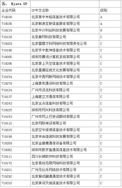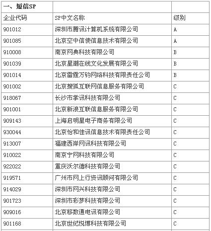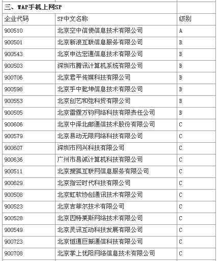 附:08年移動夢網(wǎng)SP第二次分層分級評級結(jié)果