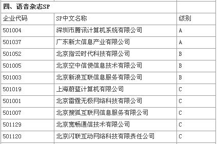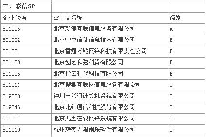 業(yè)界普遍認(rèn)為,此次評級結(jié)果對于騰訊、空中、TOM等老牌SP較為有利,未能進入憑借的SP將面臨較大的生存壓力。