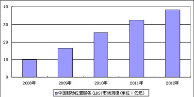盡管GPS手機已蔚然成風,對于電信運營商的移動位置服務(wù)形成了巨大的沖擊,但是,GPS手機在地圖實時更新、軟件升級、交互功能和群組功能等方面與增值業(yè)務(wù)相比還存在一定的差距。在3G時代到來之際,電信運營商須深挖位置服務(wù)用戶的使用習慣,不斷創(chuàng)新產(chǎn)品、融合多種業(yè)務(wù)與服務(wù)模式,注重用戶參與、優(yōu)化用戶體驗,不斷強化自身在業(yè)務(wù)的實時性、互動性、綜合性等方面的優(yōu)勢,移動位置服務(wù)市場必將獲得飛速的發(fā)展。賽迪顧問預(yù)計:隨著3G用戶的拓展、3G業(yè)務(wù)的普及,LBS業(yè)務(wù)市場將得到飛速的發(fā)展,到2012年,中國LBS市場規(guī)模將達到38.24億元。