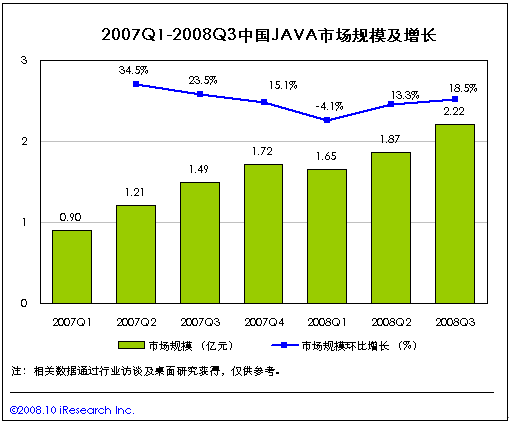 艾瑞咨詢研究發(fā)現(xiàn),2008年第三季度JAVA市場規(guī)模為2.22億,同比增長48.2%.在奧運影響移動增值市場規(guī)模整體升溫的環(huán)境下,中國移動自9月1日進一步屏蔽超過數(shù)量限制的單機游戲。
