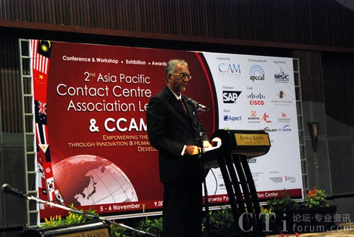 CTI論壇(ctiforum)11月18日消息(記者 秦勇):金秋時(shí)節(jié),收獲的季節(jié)。2009年11月05-06日,由亞太客服與呼叫中心聯(lián)盟(APCCAL)主辦,馬來(lái)西亞客服協(xié)會(huì)(CCAM)承辦的第二屆亞太呼叫中心產(chǎn)業(yè)峰會(huì)及最佳呼叫中心頒獎(jiǎng)典禮在馬來(lái)西亞首都吉隆坡隆重召開(kāi)。 CTI論壇記者全程參與并報(bào)道此次盛會(huì)。