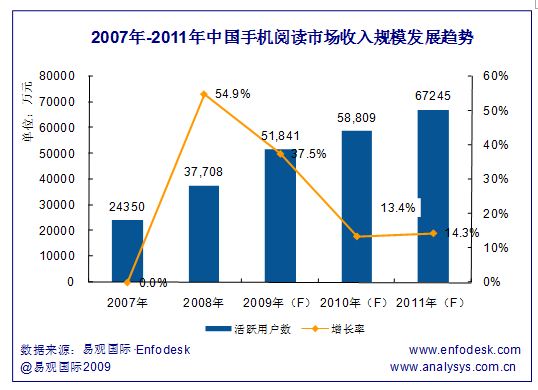 易觀預(yù)測(cè):2010年中國手機(jī)閱讀活躍用戶數(shù)將達(dá)2億