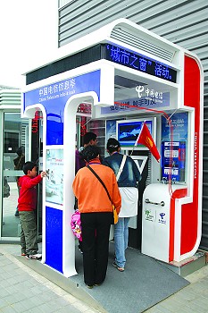 在世博園區(qū),除了在中國電信的綜合信息亭上查詢信息,還可以到電信的世博營業(yè)廳體驗(yàn)快樂。玩玩魔屏,看看3D高清IPTV,還有移動(dòng)極速寬帶網(wǎng)供你飛翔。