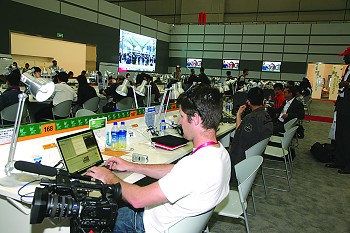 世博的主新聞中心一開門便受到媒體的“熱捧”。中國電信的后臺信息系統(tǒng)顯示,世博主新聞中心的數(shù)據(jù)量一直居高不下,因?yàn)橛浾哒χ米烂嫔系?00M有線寬帶高速上網(wǎng)、收發(fā)稿件、傳送采訪的視頻。在世博主新聞中心一樓記者工作大廳,想在300個(gè)坐席里找個(gè)空位可不是容易的事情。