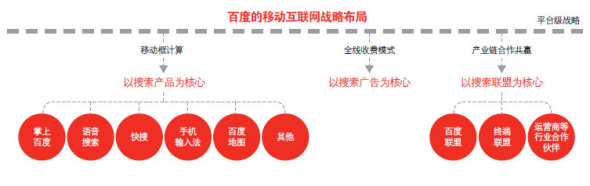 百度無(wú)線(xiàn)的戰(zhàn)略仍將以搜索作為核心!鞍俣仍跓o(wú)線(xiàn)方面的核心發(fā)展規(guī)劃就三條:第一條,以搜索產(chǎn)品為核心布局移動(dòng)框計(jì)算。第二條,以搜索廣告位核心,探索全線(xiàn)收費(fèi)模式。第三條,以搜索聯(lián)盟為核心,推動(dòng)產(chǎn)業(yè)鏈合作共贏。”這是百度的官方說(shuō)法。
