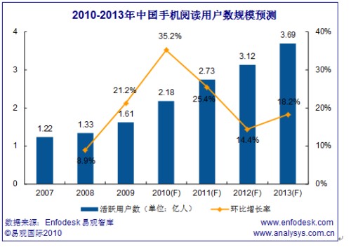 易觀國際(Analysys International)分析預(yù)計2010年手機閱讀市場規(guī)模將突破30億元。