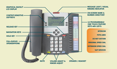 Aksys' KONNECT Office Phone System copped a best of show award at last year's IT Expo, the umbrella conference that includes Digium Asterisk World. It's presently available in two models: the KONNECT 600PL VoIP and landline phone and the 600P IP phone, which includes the 600PL's features minus a landline (FXO connector), and includes three-way conference calling, public address, paging to multiple phones, 3-digit dialing between sites and the ability to support as many as 14 concurrent calls per phone. Aksys markets KONNECT as an "office phone system inside a phone" and has gained traction with small businesses looking to integrate VoIP and landline functions and home and remote offices.