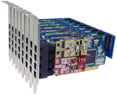 China-based Synway makes media processing and signaling products, telephony hardware and multimedia switches for use in convergence settings, and it's an active supporter of Asterisk and other open-source-based PBX deployments. Among its Asterisk-oriented products are the FXM Series Analog Telephony Card (pictured), which according to Synway supports FXO and FX lines for any open-source application, as well as the TEJ Series Digital Telephony Card (a hardware architecture), the CDC Series Transcoding Card (codec translation between G.729A and G.711), and SuPerForm, Synway's patent-owned echo cancellation technology.