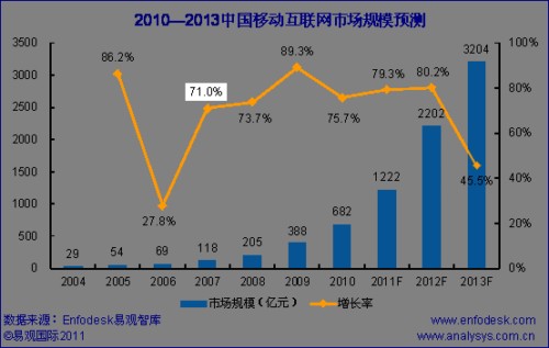 2013年中國移動(dòng)互聯(lián)網(wǎng)市場規(guī)模將突破3000億