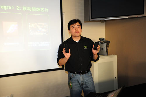 英偉達(dá)公司中國區(qū)公關(guān)經(jīng)理金洋先生展示天語和LG超級手機