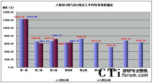 圖5.5 入職達4周與9周員工平均每單承保額度
