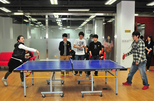 (十八) 5點(diǎn)鐘了啦,可以下班了喔,還是A班的我們幸福,晚班可就熬人啦,但不少時(shí)候?yàn)榱斯ぷ骱臀覀兊能囍骺蛻,總會偷偷的說,“為人為己服務(wù)至上,有付出就會有回報(bào)……”下班時(shí)間約了同事在公司B2打乒乓球哦~勞逸結(jié)合,放松下,現(xiàn)場觀眾很多的,男同胞很捧場,哈哈。