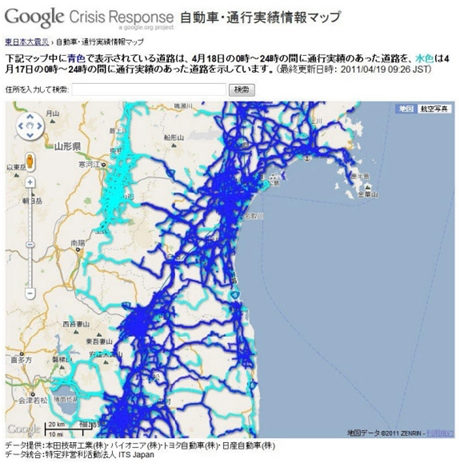 “探針”是汽車物聯(lián)網(wǎng)的重要技術(shù)之一,此前本田已經(jīng)提供了稱為“網(wǎng)上導(dǎo)航”的獨(dú)自服務(wù)。日本ITS協(xié)會(huì)希望推動(dòng)探針技術(shù)的通用化,但是廠商之間存在競爭關(guān)系,難以協(xié)同一致。本次,在通行圖上,本田、先鋒、豐田、日產(chǎn)汽車都提供了信息,實(shí)現(xiàn)了共享信息,對救災(zāi)物資運(yùn)輸?shù)穆窙r信息提供了有益參考,“地震時(shí)方顯汽車物聯(lián)網(wǎng)的價(jià)值”(八木浩一)。