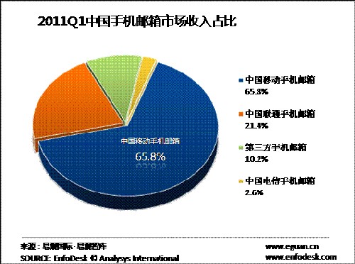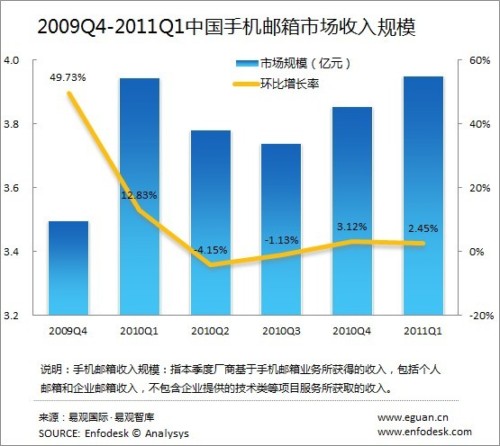 2011年Q1中國手機(jī)郵箱市場收入規(guī)模達(dá)3.95億元