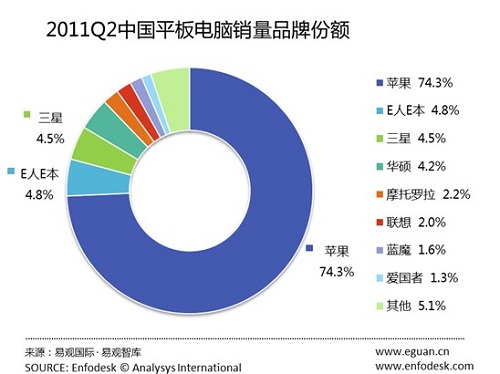 2011年第2季度iPad在平板電腦銷(xiāo)量份額跌破75%