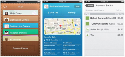 5月份時(shí)我們報(bào)道 Square 推出電子卡包,現(xiàn)在這個(gè)功能已經(jīng)可以使用,電子卡包包含位置信息、商家聯(lián)系方式、打折券以及購買歷史等,當(dāng)你在一家常去的商家購物時(shí),只需要使用一個(gè)“use tab”按鈕并告訴對方你的名字即可,不需要真正拿出信用卡。商家處理支付后購買者將會(huì)收到一個(gè)推送通知。