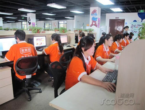 速途網(wǎng)在窩窩團(tuán)位于北美國際商務(wù)中心的呼叫中心看到,窩窩團(tuán)在線客服和call center以及論壇維護(hù)等部門在一層,而二層是劃分成商超、票務(wù)、親子麗人、中餐、旅游、甜品、生活娛樂等部門的部分銷售團(tuán)隊(duì)。