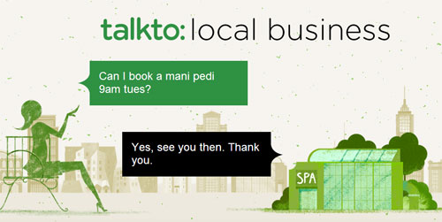 這一切是怎樣實(shí)現(xiàn)的呢?TalkTo通過短信與商家溝通。用戶可以通過web應(yīng)用在TalkTo目錄中搜索需要的服務(wù),輸入商家的詳細(xì)地址或者大概位置,TalkTo就可以確保商家看到用戶的短信。TalkTo用戶可以向商家提出問題和意見,或直接預(yù)定服務(wù)。“這一切就像和朋友發(fā)短信一樣簡(jiǎn)單。”