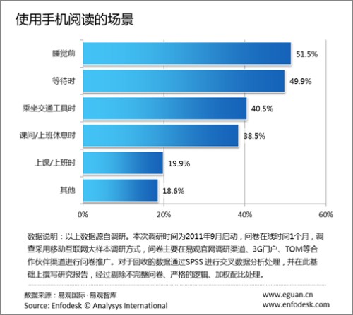 本次調(diào)研時間為2011年9月啟動,問卷在線時間1個月,調(diào)查采用移動互聯(lián)網(wǎng)大樣本調(diào)研方式,問卷主要在易觀官網(wǎng)調(diào)研渠道、3G門戶、TOM等合作伙伴渠道進(jìn)行問卷推廣。對于回收的數(shù)據(jù)通過SPSS 進(jìn)行交叉數(shù)據(jù)分析處理,并在此基礎(chǔ)上撰寫研究報告,經(jīng)過剔除不完整問卷、嚴(yán)格的邏輯、加權(quán)配比處理。