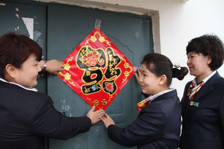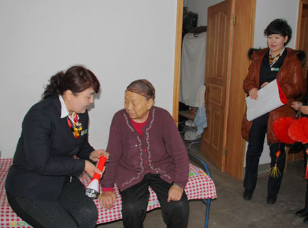 “阿姨,春節(jié)快到了,我們來看看您,前兩天已經(jīng)幫您把電充上了,這次給您帶了個手電,用著它以后到地下室可以照個亮。”隊長阿依古麗向丁阿姨說明來意,還跟丁阿姨試了試,手電是充電式的,不用換電池,丁阿姨挺高興的。臨走時,阿依古麗還在她家門上貼了個大紅的“福”字,祝福老人家新年快樂。