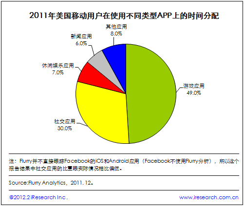 2011年游戲與社交占據(jù)美國移動(dòng)用戶應(yīng)用使用時(shí)間前兩名