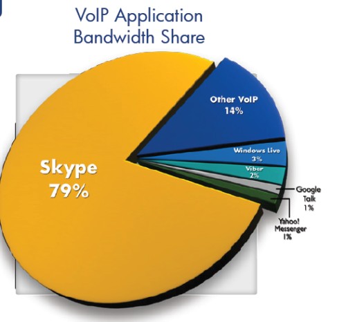 總體來看,VOIP和即時(shí)通信市場(chǎng)生機(jī)勃勃,涌現(xiàn)出很多新應(yīng)用。2011年下半年,Skype占據(jù)了全球移動(dòng)VOIP流量的79%,盡管是仍是voip市場(chǎng)的老大,但Skype的流量份額已經(jīng)比2011上半年的82%有所減少。面臨著新的進(jìn)入者如Viber、ooVoo,Tango和其他應(yīng)用的挑戰(zhàn)。