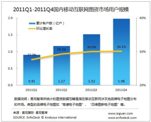 2011Q4國內移動互聯(lián)網(wǎng)圖資市場用戶規(guī)模達1.98億戶