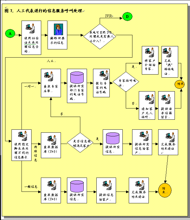 在上文提到的各種呼叫處理辦法都需要與提供服務(wù)的公司部門緊密配合和協(xié)作。這些部門將負(fù)責(zé)及時(shí)準(zhǔn)確地為呼叫中心服務(wù)提供信息,滿足經(jīng)過呼叫中心或網(wǎng)絡(luò)初期處理的服務(wù)請(qǐng)求。