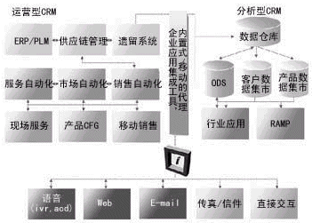 CRM是一種以客戶為中心的業(yè)務(wù)模式,是由多種技術(shù)手段支持的、通過以客戶為中心達(dá)到增強企業(yè)競爭力的商業(yè)策略,這一點已在市場上取得了共識。這種認(rèn)識對許多企業(yè)來說,或許仍覺得有些抽象。CRM要達(dá)到的目標(biāo),就是在適當(dāng)?shù)臅r間通過適當(dāng)?shù)那澜o適當(dāng)?shù)目蛻籼峁┻m當(dāng)?shù)漠a(chǎn)品和服務(wù),這不是憑一種技術(shù)手段就能夠?qū)崿F(xiàn)的。美國調(diào)研機構(gòu)Meta Group把CRM分為三類(如圖1所示):一是與企業(yè)業(yè)務(wù)運營緊密相關(guān)的運營型CRM。運營型CRM即所謂的前端辦公室應(yīng)用,包括銷售自動化、市場自動化、服務(wù)自動化等應(yīng)用,以及前端辦公室和后端辦公室的無縫集成。二是以數(shù)據(jù)倉庫為基礎(chǔ)、實現(xiàn)統(tǒng)一客戶視角的分析型CRM。分析型CRM與數(shù)據(jù)倉庫密切相關(guān),運用數(shù)據(jù)挖掘、OLAP、交互查詢和報表等手段,了解客戶的終身價值、信用風(fēng)險和購買趨向等。三是基于多媒體聯(lián)系中心、建立在統(tǒng)一接入平臺上的協(xié)作型CRM。協(xié)作型CRM是為客戶交互服務(wù)和收集客戶信息提供的各種渠道及聯(lián)系的手段。
