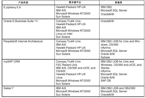 有些環(huán)境是軟件所必須要支持的。技術(shù)架構(gòu)必須要支持Microsoft NT/2000、Sun Solaris服務(wù)器平臺(tái)、IBM DB2、Microsoft SQL Server和Oracle Server管理系統(tǒng)。這些都是世界領(lǐng)先的系統(tǒng)環(huán)境,而且也是企業(yè)最可能要使用到的系統(tǒng)。因此如果產(chǎn)品不能支持這些環(huán)境顯然會(huì)產(chǎn)生很大的局限性。從上表我們可以看出,除了Oracle外都能夠支持這些“必須的“環(huán)境。(因?yàn)镺racle必須要支持自己的數(shù)據(jù)庫(kù)。)