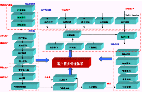 稱之為"體系"主要體現(xiàn)在以下方面:跨越和涉及房地產(chǎn)售前、售中、售后完整階段的各個(gè)部門(mén)