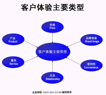 一家企業(yè)(或一個品牌)可以直接或間接讓客戶體驗的,主要類別為產(chǎn)品、服務(wù)、關(guān)系、價格、便利性、品牌形象。在不同行業(yè),對不同目標市場與客戶,每種類別的重要性各不一樣。但最終客戶體驗的好與壞都離不開這些因素,亦是客戶為什么光顧(或不光顧)的原因(見圖三、客戶體驗主要類型)。
