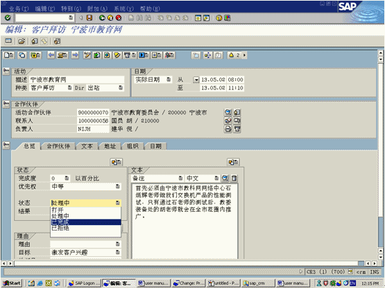 Explorer的層級(jí)樹(shù)結(jié)構(gòu)顯示客戶間的業(yè)務(wù)關(guān)系。通過(guò)報(bào)價(jià)菜單選項(xiàng)中預(yù)定義報(bào)價(jià)信息使用訂單輸入功能?梢赞D(zhuǎn)化成為訂單,后臺(tái)功能與SAPR/3集成可以實(shí)現(xiàn)。