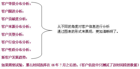 - 客戶分析:根據(jù)客戶管理的進(jìn)程,多方位多角度的分析客戶的構(gòu)成、發(fā)展、進(jìn)程、貢獻(xiàn)等,幫助企業(yè)快速響應(yīng)客戶的需求,有價(jià)值的關(guān)懷客戶,使企業(yè)客戶關(guān)系管理建立起一套科學(xué)的體系。