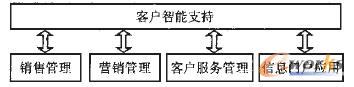 。5)客戶智能支持?蛻糁悄苤С痔幱谙到y(tǒng)功能平臺的核心地位,若把圖2中的5個模塊比作是人體的不同功能器官,客戶智能支持就相當(dāng)于人的“大腦”。雖然CRM應(yīng)用系統(tǒng)中其他模塊也具各一定的數(shù)據(jù)統(tǒng)計分析能力,但它們的主要功能定位在業(yè)務(wù)操作和客戶協(xié)作層面,客戶智能支持模塊則是完整的、以輔助決策為設(shè)計目標(biāo)的分析型應(yīng)用,其基礎(chǔ)數(shù)據(jù)來自于各CRM業(yè)務(wù)流程運行產(chǎn)生的大量數(shù)據(jù)及企業(yè)其他應(yīng)用系統(tǒng)數(shù)據(jù)。