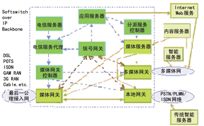 E1、DSL、Ethernet到無線接入技術(shù)GSM/GPRS、PHS、W-CDMA以至未來的接入技術(shù);支持與各種傳統(tǒng)電信業(yè)務(wù)網(wǎng)絡(luò)如PSTN和PLMN網(wǎng)絡(luò)以信令網(wǎng)節(jié)點(diǎn)方式互聯(lián),支持與IP業(yè)務(wù)網(wǎng)絡(luò)(如VoIP)和多媒體通信網(wǎng)絡(luò)(如Internet)互聯(lián);與接入網(wǎng)絡(luò)的信令和傳統(tǒng)業(yè)務(wù)網(wǎng)絡(luò)的信令(SS7)無縫互聯(lián);支持話音、遠(yuǎn)程會(huì)議、多媒體通信等基于會(huì)話的通信業(yè)務(wù);