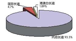 ● 中國IP電話國際長途通話時長已經(jīng)占到國際長途話務(wù)量的20%,分流了大批的國際話務(wù)量,這也是固定電話國際長途話務(wù)量和港澳臺長途話務(wù)量出現(xiàn)負(fù)增長的主要原因。