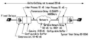 網(wǎng)關(guān)或路由器內(nèi)部的語音編碼器對(duì)帶內(nèi)音頻信號(hào)進(jìn)行打包和重組。這些器件對(duì)確認(rèn)接收和有效數(shù)據(jù)包接收的順序進(jìn)行糾錯(cuò)檢查。一旦發(fā)現(xiàn)錯(cuò)誤,將命令重發(fā),而重發(fā)相關(guān)數(shù)據(jù)包則不可避免地造成傳輸上的延時(shí)。網(wǎng)關(guān)或路由器上的緩存器