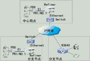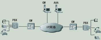 對于大多數(shù)的企業(yè)用戶,都擁有自己的用戶交換機PBX。在進行IP電話網的建設中,這些PBX將被保留,繼續(xù)承擔起用戶接入的功能。而這些PBX之間的中繼連接都將通過IP骨干網來完成。這樣,既可以節(jié)約價格不菲的長途中繼租用費,也避免了大規(guī)模的改造所帶來的浪費。
