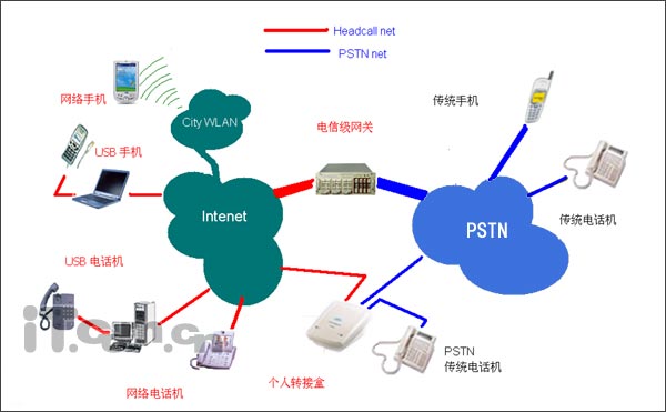 IP網(wǎng)絡(luò)電話和普通(PSTN)電話到底是怎么樣解決互通問題的呢?下面的我們詳細(xì)的探討這個(gè)問題。我們都知道,互聯(lián)網(wǎng)與普通的電話網(wǎng)絡(luò)是不同的兩個(gè)網(wǎng)絡(luò),要是實(shí)現(xiàn)IP網(wǎng)絡(luò)電話和普通(PSTN)電話互通就必須使用一種設(shè)備連接這兩個(gè)網(wǎng)絡(luò)。如下圖所示: