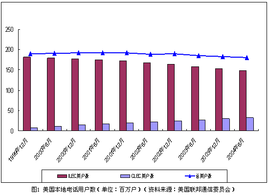 就整體而言,美國(guó)本地電話用戶總量穩(wěn)中有降,移動(dòng)通信的替代作用開始顯現(xiàn)。截止到2004年6月,包括住宅和商業(yè)用戶,美國(guó)本地電話用戶總量達(dá)到1.81億戶。但與3年前相比,美國(guó)本地電話用戶數(shù)量實(shí)際減少了近1200萬(wàn)戶。與此同時(shí),移動(dòng)用戶數(shù)量迅速增長(zhǎng)。截止到2004年6月,美國(guó)移動(dòng)電話用戶數(shù)比上年同期增長(zhǎng)13%,達(dá)到1.673億戶,基本接近固定電話用戶的數(shù)量。