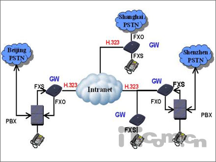 、 ADSL 、 ISDN 等,只需在原有或新建的局域網服務器中運行一套網守軟件。局域網內的所有網絡電話都可注冊到該網守上,同時給每一臺網絡電話分配一個不相沖突的電話號碼即可實現局域網內各個成員之間的免費通話。一方面可以實現