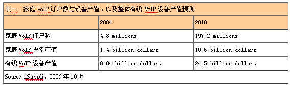 最近iSuppli更進(jìn)一步指出,推動(dòng)VoIP設(shè)備增長的主要?jiǎng)恿碓词莵碜杂诩彝ビ脩。根?jù)其預(yù)測,2004年時(shí)全球有480萬用戶,至2010年時(shí)將增長至1.97億家庭用戶,增長40倍以上。