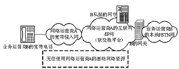 其次,目前國內(nèi)VoIP的運(yùn)作模式,在VoIP運(yùn)作模式中涉及到網(wǎng)絡(luò)運(yùn)營商和業(yè)務(wù)運(yùn)營商。我們用下面的例子來具體說明該問題。假定在某地,在其他運(yùn)營商服務(wù)區(qū)域內(nèi)沒有本地網(wǎng)資源的業(yè)務(wù)運(yùn)營商B利用該服務(wù)區(qū)內(nèi)擁有本地網(wǎng)資源和互聯(lián)網(wǎng)資源的網(wǎng)絡(luò)運(yùn)營商A的ADSL寬帶接入到A的公眾互聯(lián)網(wǎng)上,在該網(wǎng)上,業(yè)務(wù)運(yùn)營商B通過非法架設(shè)網(wǎng)守(計(jì)費(fèi)控制系統(tǒng))及網(wǎng)關(guān)等設(shè)備開展VoIP業(yè)務(wù),然后在自己服務(wù)區(qū)域內(nèi)的PSTN網(wǎng)絡(luò)上進(jìn)行“落地”,這樣則直接旁路了網(wǎng)絡(luò)運(yùn)營商A的電話語音業(yè)務(wù),而網(wǎng)絡(luò)運(yùn)營商A自己建設(shè)維護(hù)的互聯(lián)網(wǎng)則沒有得到任何補(bǔ)償,于是只能采用技術(shù)跟蹤然后封堵的方式來遏止業(yè)務(wù)運(yùn)營商B的VoIP業(yè)務(wù)開展。在該情況下,業(yè)務(wù)運(yùn)營商B的VoIP業(yè)務(wù)很難做大,而網(wǎng)絡(luò)運(yùn)營商A也可以明正言順的進(jìn)行封堵政策。最終受到損害的將會是整個VoIP產(chǎn)業(yè)(圖1)。因此,從成本和公平角度來說,必須對建設(shè)維護(hù)互聯(lián)網(wǎng)的網(wǎng)絡(luò)運(yùn)營商A進(jìn)行一定的補(bǔ)償,使其有足夠的激勵去讓VoIP業(yè)務(wù)提供商利用其網(wǎng)絡(luò)開展業(yè)務(wù)。也就是說必須建立VoIP承載網(wǎng)運(yùn)營商和VoIP業(yè)務(wù)運(yùn)營商之間的結(jié)算體系!