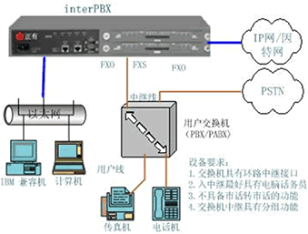 在實際使用過程中,經常會出現(xiàn) interPBX與已有的PBX搭配使用的情況。interPBX與PBX搭配使用有很多好處,例如節(jié)省整個系統(tǒng)的設備投入成本、有效利用現(xiàn)有的布線及電話機等。