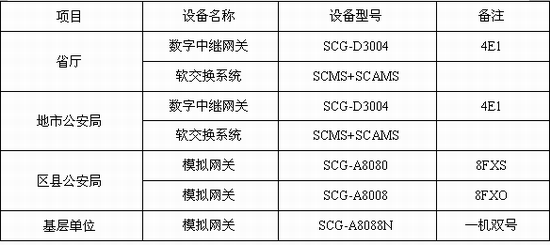 在區(qū)縣局,可采用數(shù)字E1中繼網(wǎng)關SCG-D3004或采用模擬語音網(wǎng)關(SCG-A8000);當話務量不是很高時,可采用模擬語音網(wǎng)關與用戶原有的